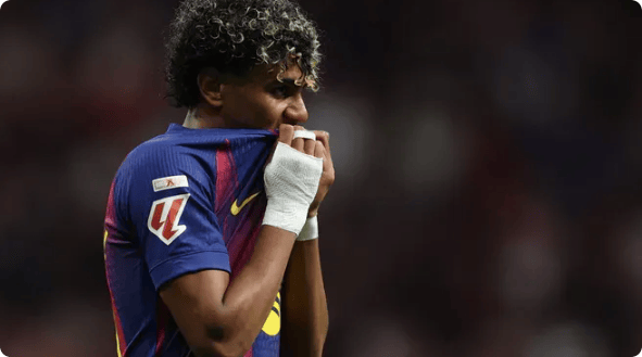 比赛结束后,转播镜头一直跟着亚马尔。 他先是在中圈站了一会儿,看着马竞球员庆祝,然后慢慢走到场边,蹲了下来。 肩膀微微颤抖。 诺坎普的球迷没有退场,他们还在唱歌,但歌声里听不出多少底气。