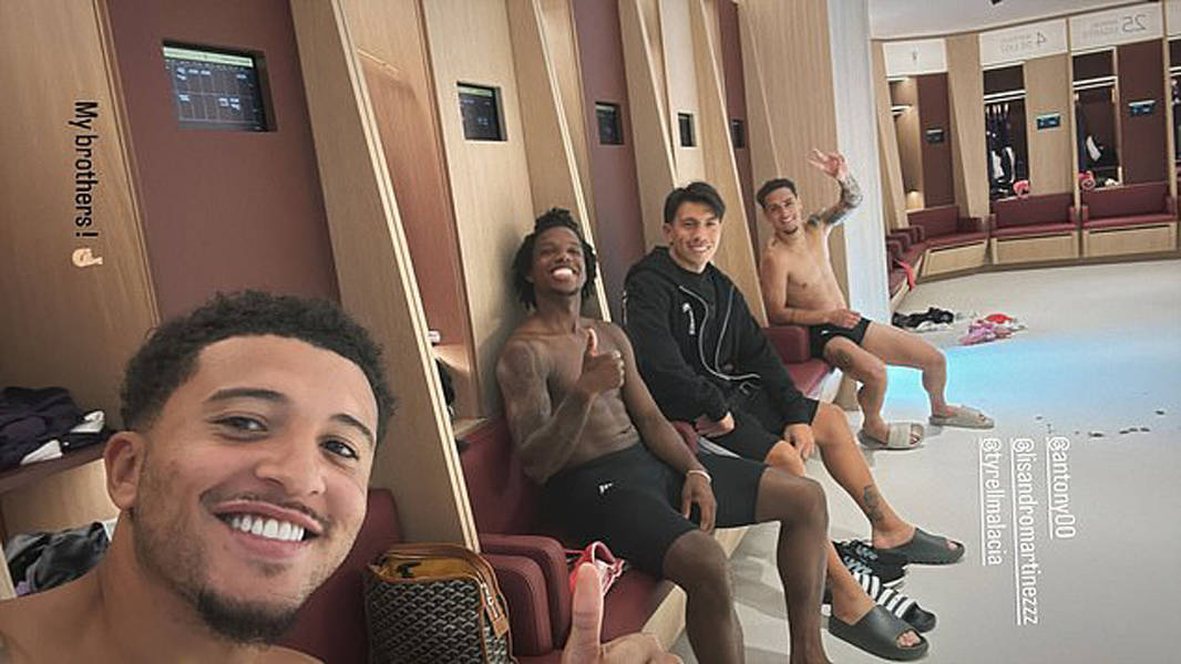 周三,桑乔通过社媒分享了一张与泰雷尔·马拉西亚、安东尼和利桑德罗·马丁内斯的合影,并且写道:「我的兄弟们!」马拉西亚和安东尼都是被阿莫林排除在一线队训练之外的曼联五鼠成员,阿根廷中卫利马是乱入之人,他因为重伤手术后还在康复,无法参与一线队合练。